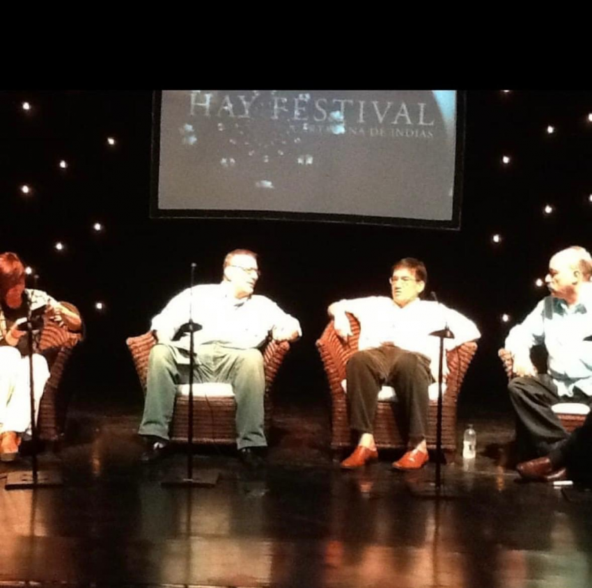 En el Hay festival en Cartagena de Indias Colombia, junto a Anabel Hernández, Sergio Dahbar y Jaime Abello. En un conversatorio sobre los libros: Los Señores del Narco de Anabel Hernández y El estado delincuente del cual soy coautor
