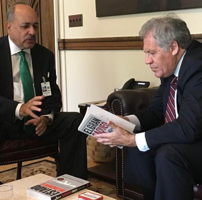 “Con el abogado, político y Secretario General de la OEA; Luis Almagro en la presentación del El Gran Saqueo 📚 en Washington 🇺🇸.”
